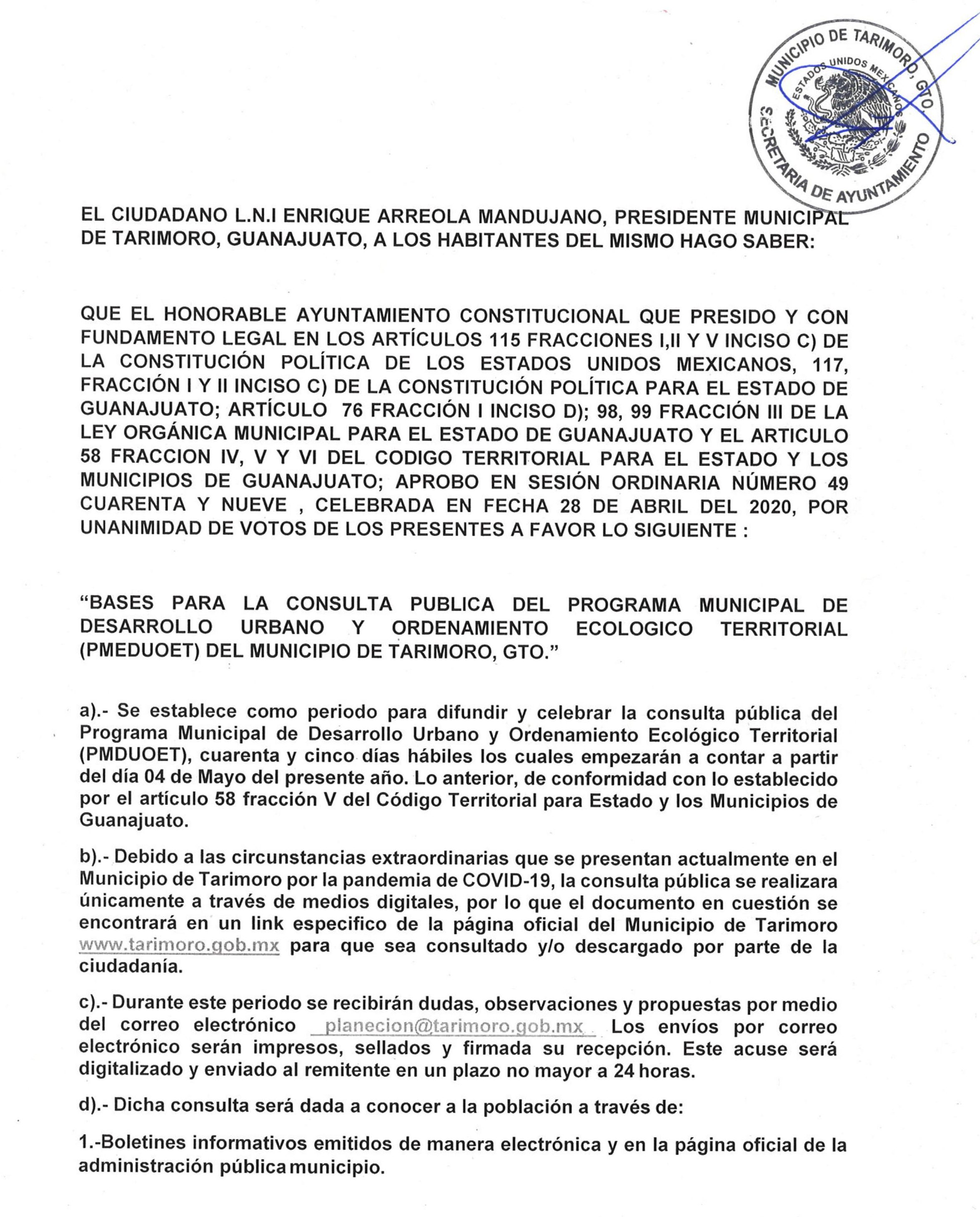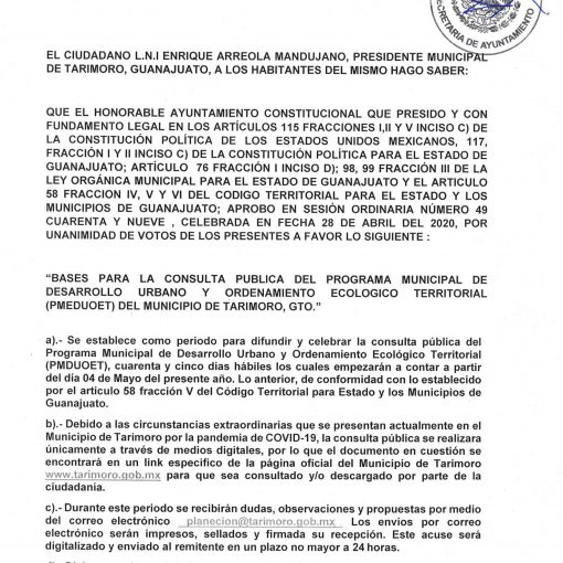 • Se reúne el consejo municipal de consulta y participación ciudadana para aprobar las estrategias del plan anual. Tarimoro, Gto., a 10 […]